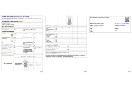 | Volume du réfrigérateur |