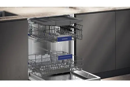 Ce lave-vaisselle entièrement intégrable Siemens SN63EX06VF d'une capacité de 14 couverts est doté de 6 programmes, de 4 options : Home Connect, Zone Intensive, Demi-charge, varioSpeed Plus (3 fois plus rapide), Paniers et tiroir flex Comfort : pour une utilisation facile, une protection efficace des verres et un chargement/déchargement rapide.